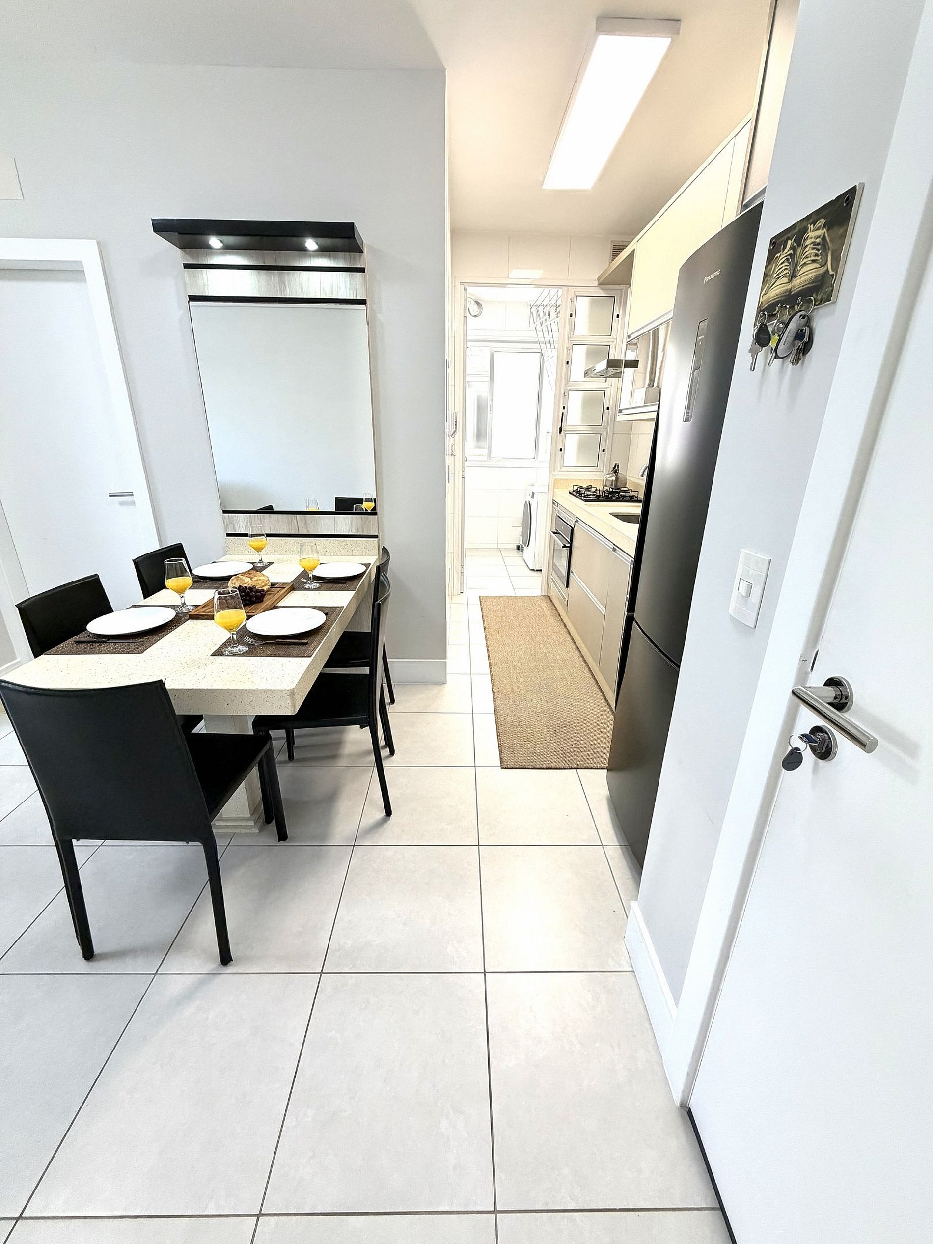 - A cozinha do apartamento é moderna e super bem equipada.