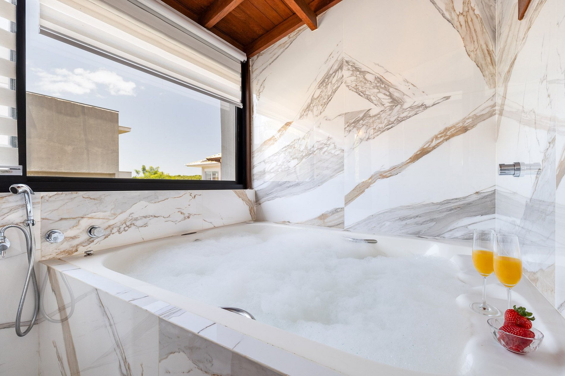 Spacious, high-standard house with 3 bedrooms, all equipped with air conditioning. The outdoor area features a barbecue grill, pizza oven, pool table, and swimming pool. The master suite has a large double bathtub. The second suite includes a mezzanine with beds both above and below. The third bedroom has a double bed. The living room offers a sofa bed and air conditioning. The kitchen is very well equipped. The location is spectacular, only 250 meters from Pico da Cruz Beach (one of the best spots in Campeche). The street is quiet. The path to the beach is beautiful, with scenery featuring sandbanks, dunes, and nature. The best market in our area is just an 800-meter walk away. The house is spacious and high-standard. Comfortable beds with white, pristine bedding.