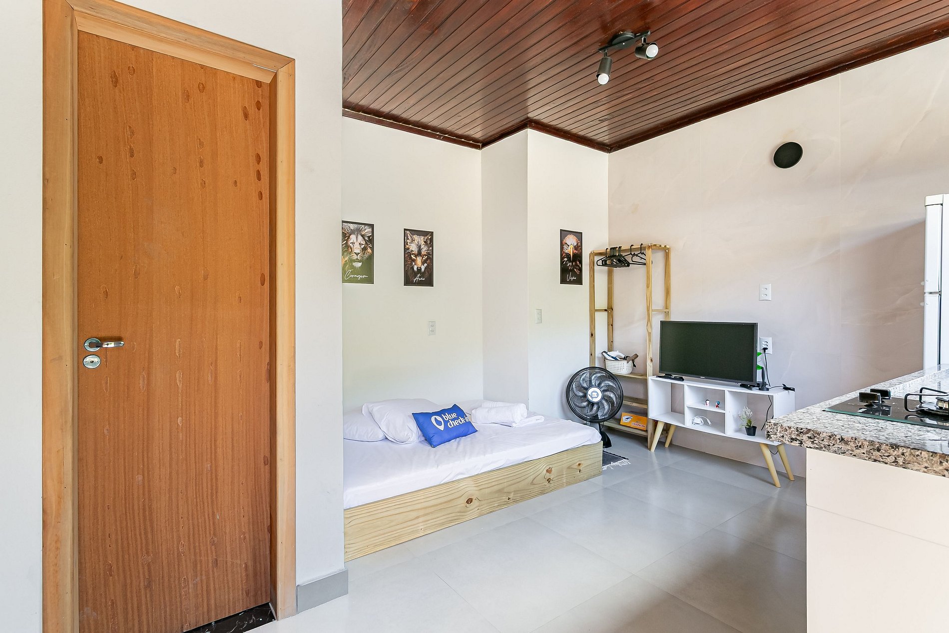 Estudio en condominio familiar y recientemente renovado. Disfruta de: smart TV; wi-fi; estacionamiento; cocina compacta y funcional; cama cómoda (con colchón doble nuevo) y ropa de cama impecable; mesa para comidas; baño privado. En el área común hay un jardín agradable, la tranquilidad es un gran diferencial. Ubicación entre las mejores playas del sur de la Isla, a 2 km de la playa de Armação y del embarque hacia la famosa isla de Campeche.