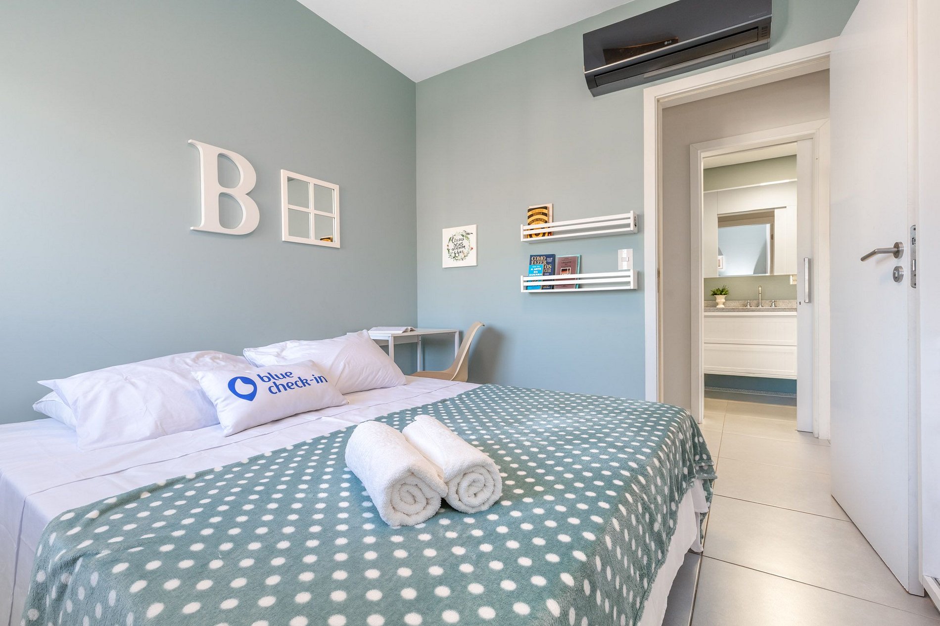 Son dos dormitorios en esta cobertura. Una suite con cama king y otro dormitorio con dos camas individuales que pueden convertirse en una cama queen. Además, es posible añadir un colchón cómodo para un quinto huésped.