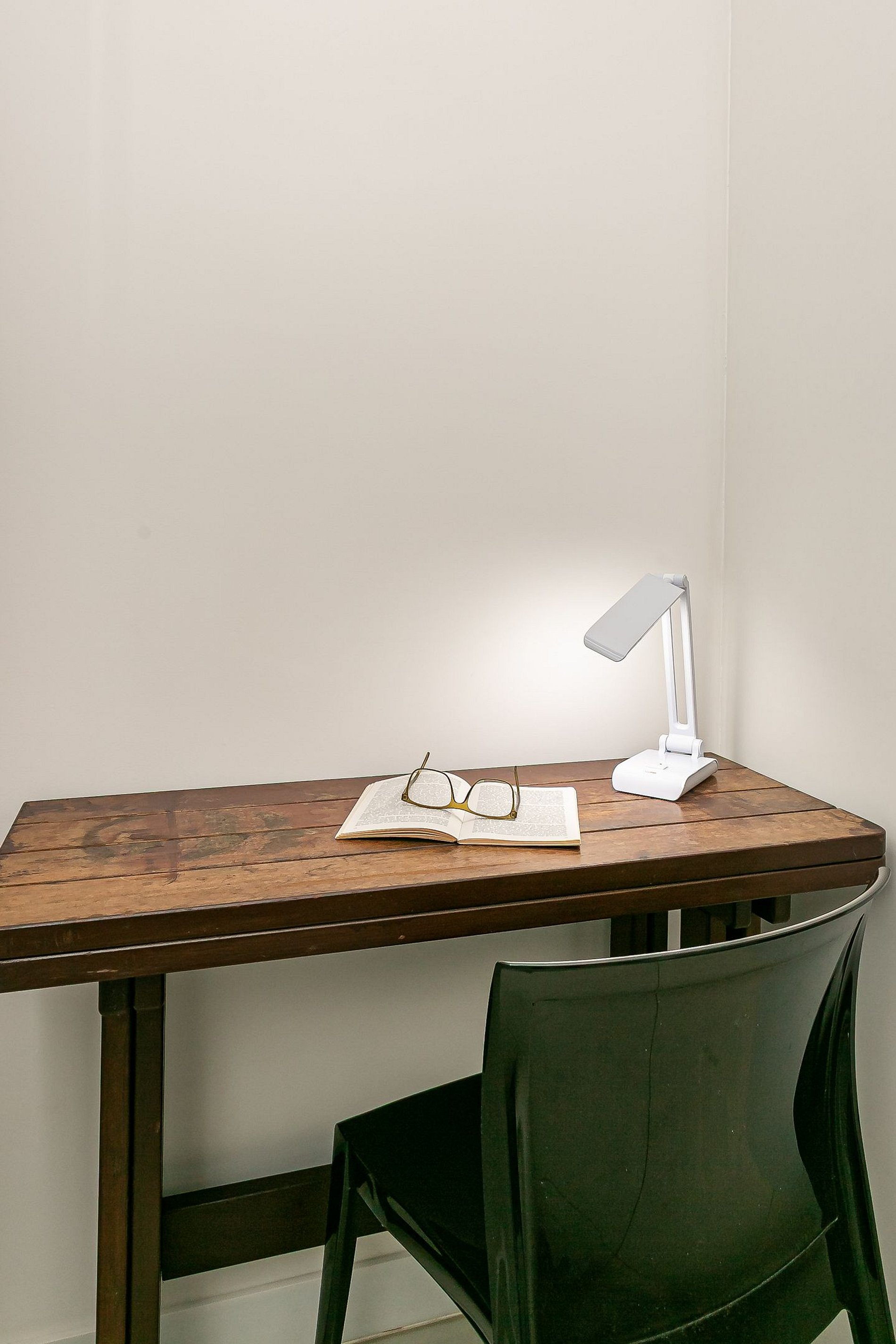 São dois dormitórios nessa cobertura. Uma suíte com cama queen + espaço privativo de trabalho e um outro dormitório também com cama queen. Além disso, na sala há um sofá cama confortável que acomoda mais duas pessoas.