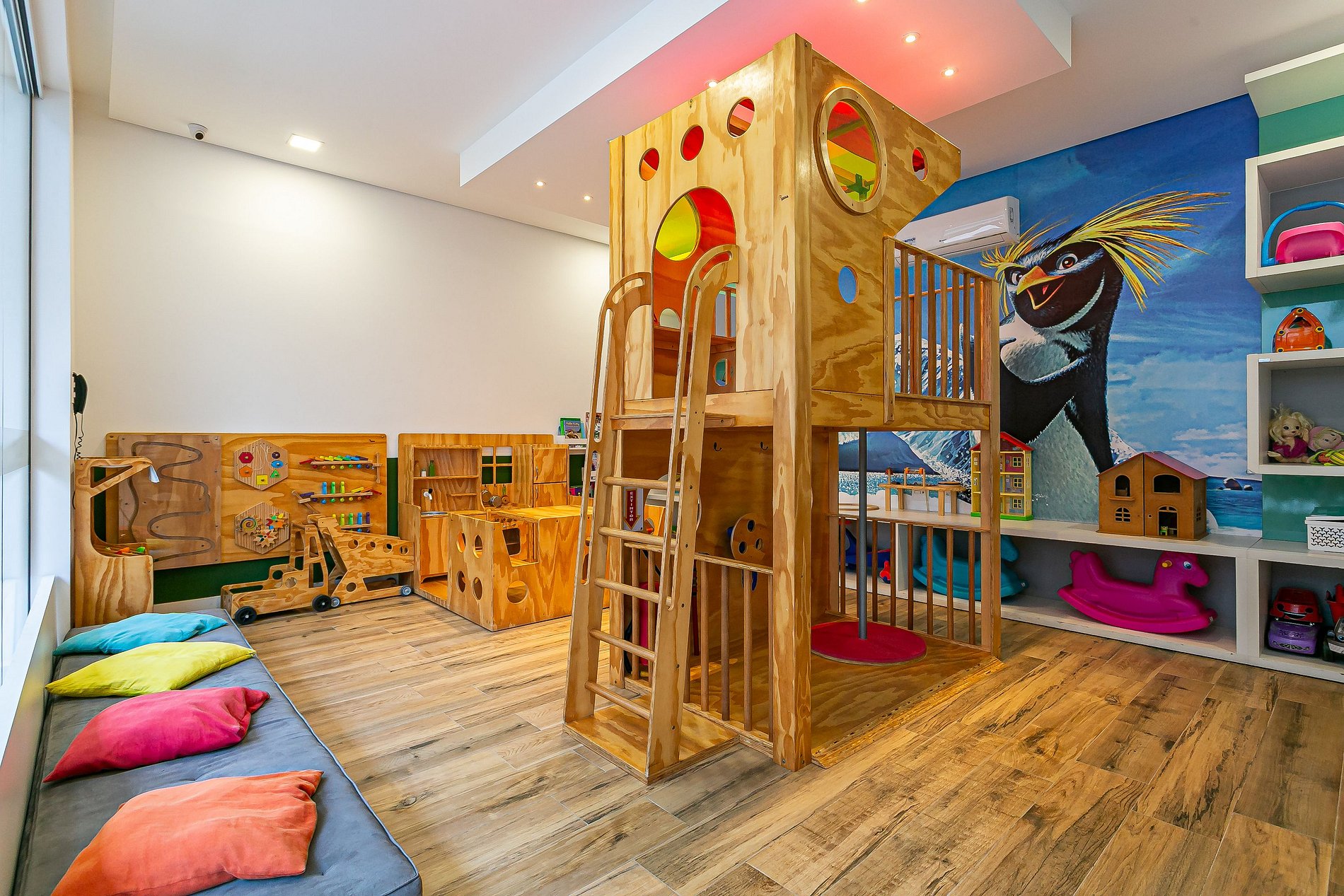 O condomínio é familiar, muito seguro e completo, nele você encontra: piscina adulto e infantil; salão de jogos com sinuca, pebolim e ping pong; brinquedoteca e parquinho infantil; além de academia muito bem equipada.